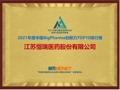 9月16日,由米内网主办的“2021年度中国生物医药企业创新力百强系列榜单”发布会在线上举办。AG官网医药继去年登顶“中国BigPharma企业创新力TOP10排行榜”后,今年再次名列该榜单首位。