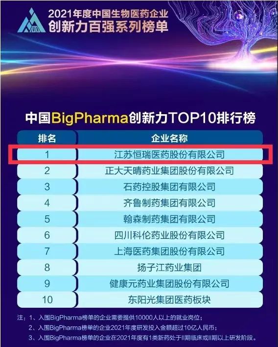 蝉联榜首!AG官网医药再次登顶“中国BigPharma企业创新力TOP10排行榜”